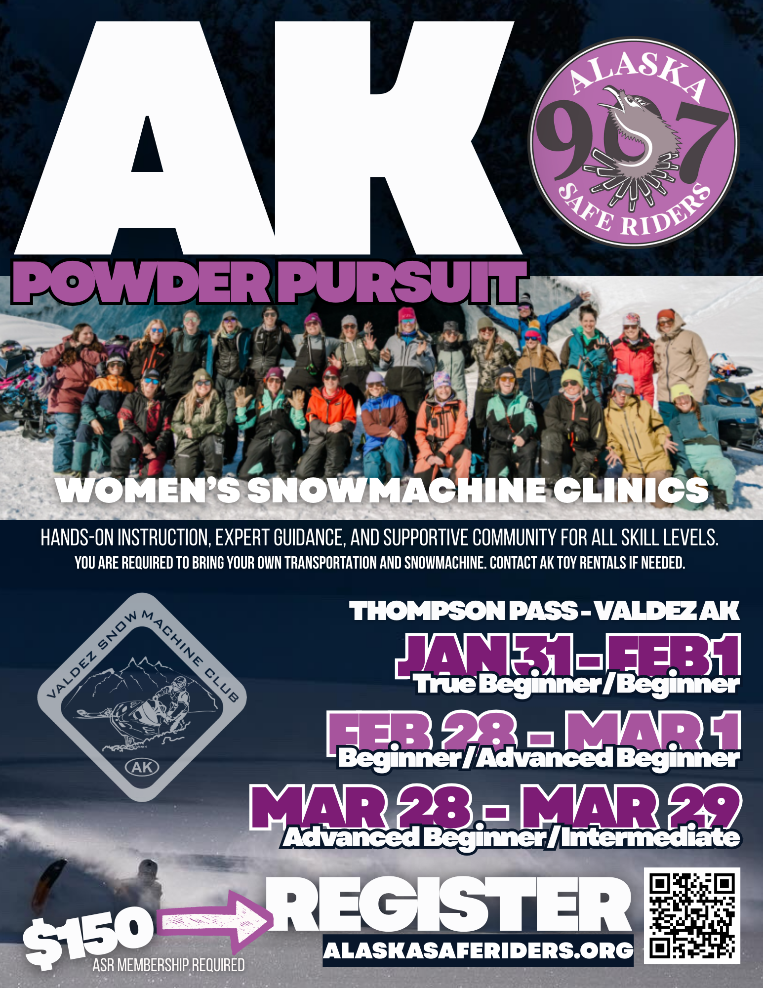 As we wrap up another incredible year, we want to take a moment to say thank you. Thanks to our members, partners, instructors, sponsors, and the wider riding community, 2025 was a year of growth, connection, and meaningful progress toward safer riding across Alaska. From education clinics and awareness seminars to weekly trail reports, new resources, and community conversations, Alaska Safe Riders continued to show up where it matters most—on the snow, in the mountains, and alongside riders at every experience level.